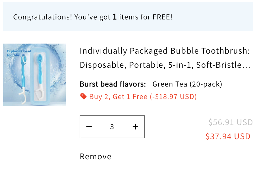 Add 3 items to your cart to enjoy our “Buy 2, Get 1 Free” offer